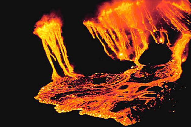 - molten or liquefied rock produced from high temperatures from magma pushing toward the surface of the Earth during a volcanic eruption. When cooled this material becomes igneous rock