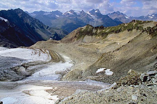 - glacial deposits of earth and rock left in the wake of a glacier's movement or after its melt. Such material can be picked up and carried away by the glacier as it moves. This debris can accumulate from landslides, from material pulled away in the progress or retreat of the glacier or from frost wedging.